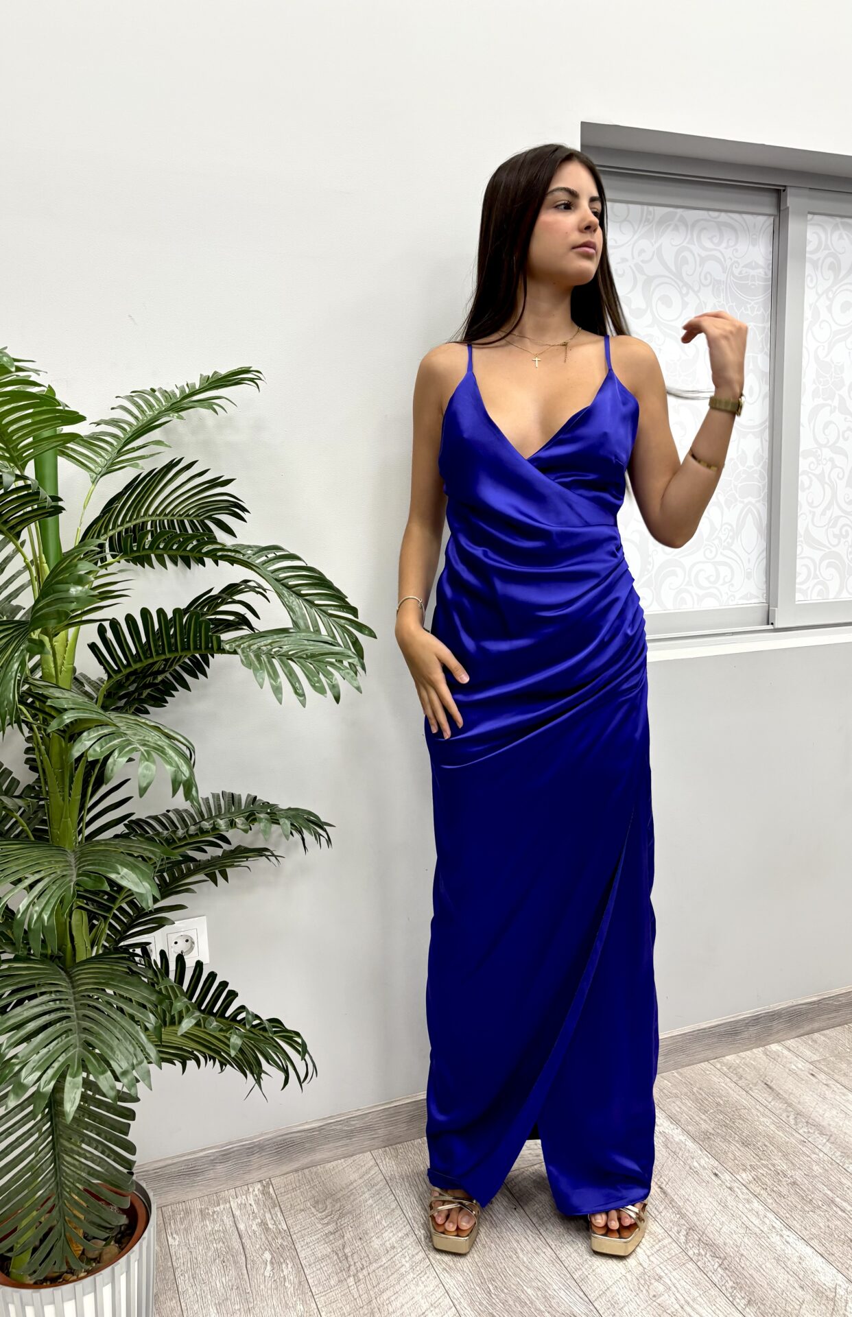 Vestido Largo Satinado Azul