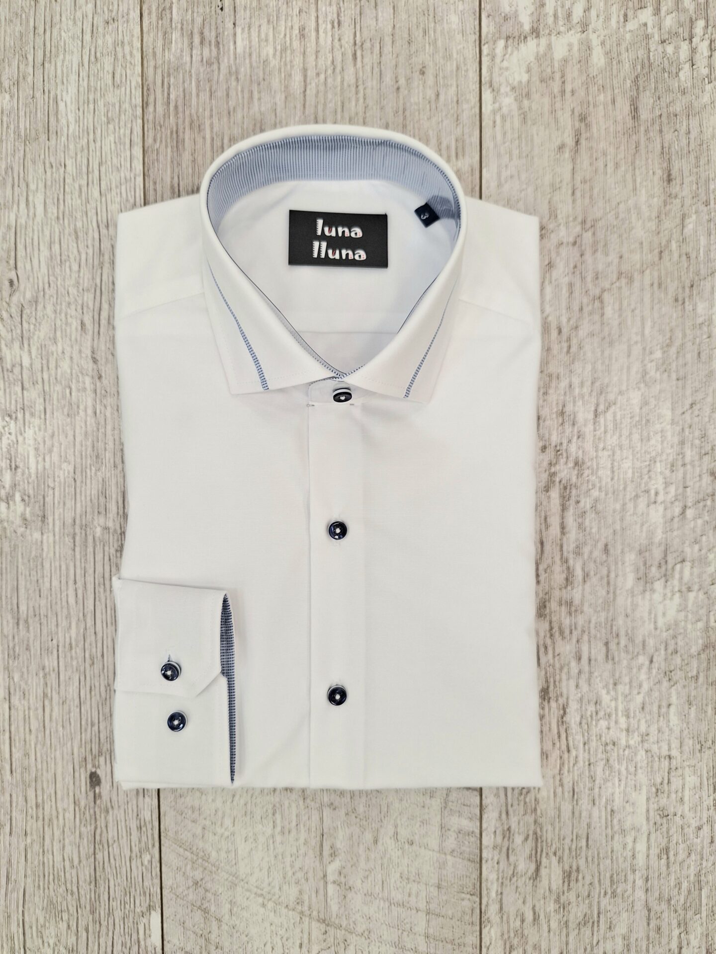 Camisa Blanca Con Vivo Azul Celeste