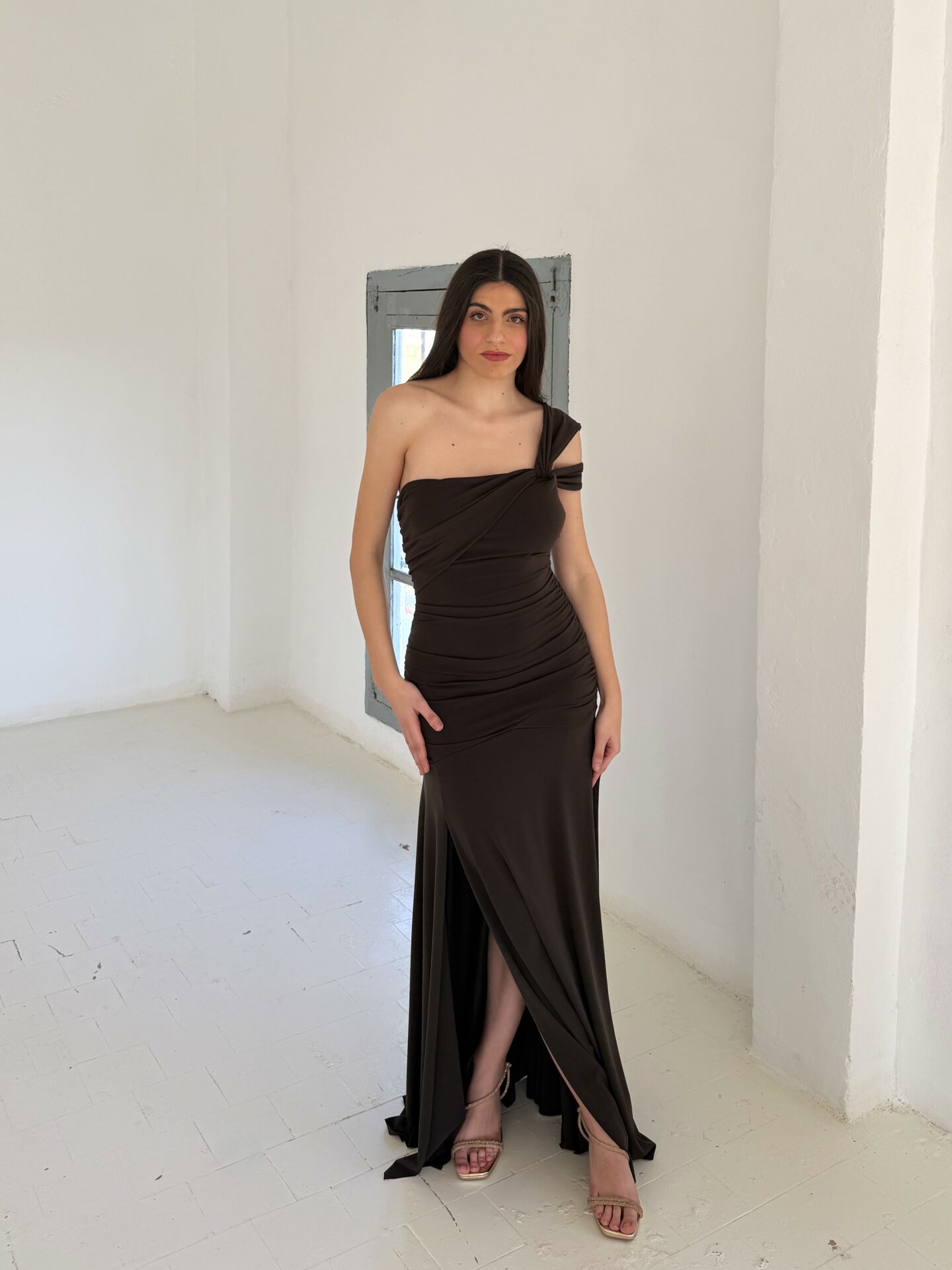 Vestido Drapeado Marrón