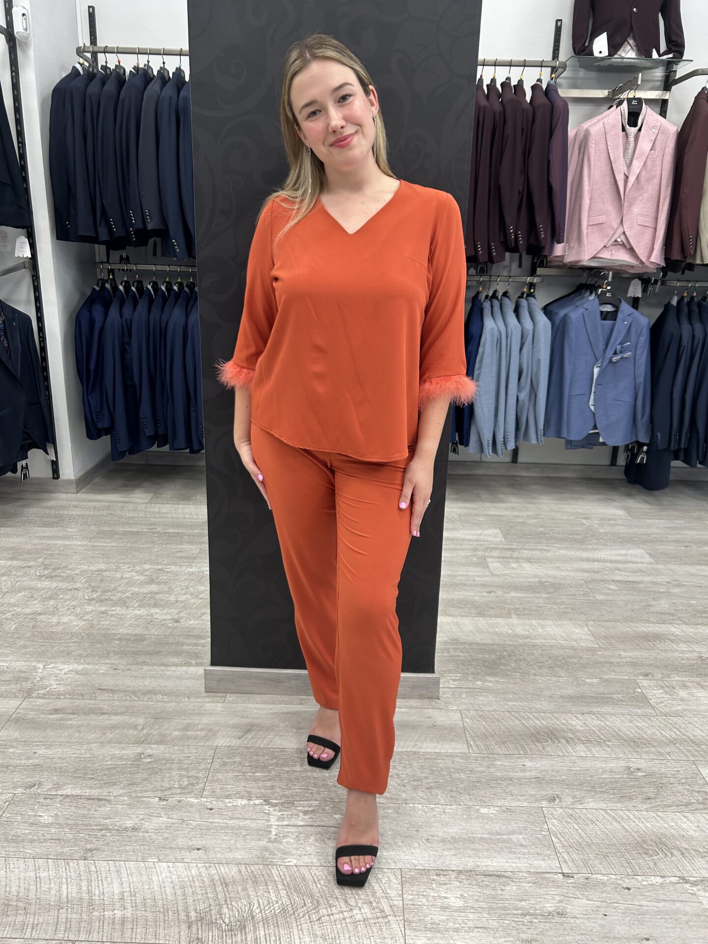 Conjunto Pantalón Naranja Plumas