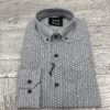 Camisa blanca con dibujo estampado en granate y azul