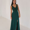 Vestido azul ajustado confeccionado popelina y efecto satinado con un drapeado en la cintura, formado por una caída con cola y un cuerpo en forma de corsé.