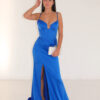 Vestido corto con falda de vuelo y cuerpo ajustado de encaje con un detalle de brillos en la cintura. Espalda descubierta formada por encaje.