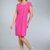 • Vestido midi en tonos rosas y negros, formado por un cuerpo con cuello barca acompañado por una falda tipo velvet en color buganvilla.