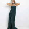 Vestido largo con escote en palabra de honor en tono burdeos.