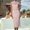 - La falda tiene una caída recta y ajustada.